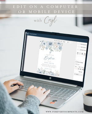 Create a meaningful first impression for your baby boy’s baptism with this beautifully designed, editable invitation. Featuring soft blue tones and elegant script fonts, it’s the perfect way to set the tone for such a special day. Easily personalize names, dates, and event details using Corjl’s easy online editor—no downloads or design skills needed. Instantly download, customize, and print a heartfelt invitation that captures the love and joy of this important milestone.