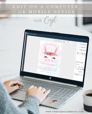 Celebrate your little girl's first birthday in sweet, bunny-themed style with this charming printable first birthday invitation template. Featuring soft pastel hues and adorable bunny details, it's perfect for creating a memorable, elegant milestone event.
