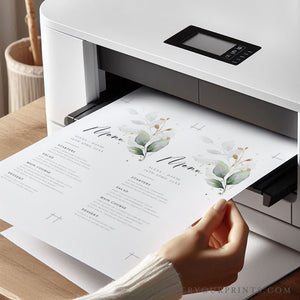 Designed with a soft watercolor greenery motif and elegant gold accents, this wedding menu template brings refined simplicity to your celebration. Fully editable through Corjl’s user-friendly platform, it lets you personalize every detail—from menu items to fonts—right in your browser. Whether you're hosting a wedding, rehearsal dinner, or shower, this customizable design adds a sophisticated, heartfelt touch to your table setting.