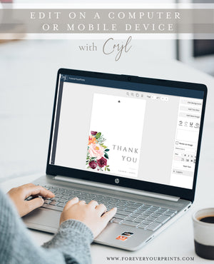 3. Customize Effortlessly: Edit your wording, fonts, colors, size, and layout right in your web browser (Google Chrome recommended) or mobile device.