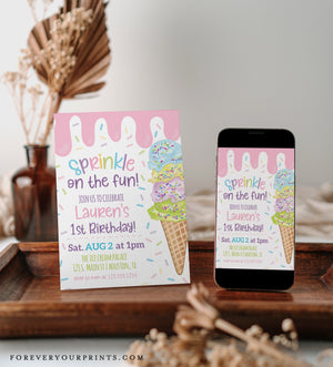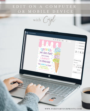 Host the sweetest celebration with this adorable ice cream birthday invitation, perfect for your little girl’s special day. This self-editable template is easy to personalize in minutes using Corjl—an intuitive online editor you can access from your browser or phone. No waiting, no stress—just edit, download, and print a charming invite that’s as fun and memorable as her big day!