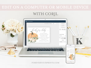 Exclusively designed by the design team at Forever Your Prints, our editable pumpkin book request cards are perfect for a gender neutral shower.