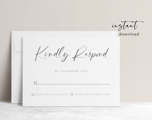 Keep your RSVP process seamless with our elegant and customizable RSVP card template, perfect for weddings, baby showers, and special celebrations. Designed for convenience, this template allows you to personalize every detail in minutes using Corjl’s user-friendly online editor—no software required. Instantly download, edit, and print from home or with a professional printer, ensuring a polished and cohesive look that perfectly matches your event.