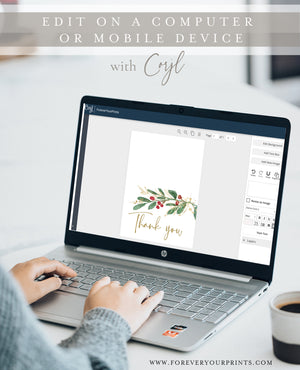 Wrap up your celebration with a heartfelt note that reflects the beauty of the season. This winter-inspired thank you card template features seasonal details and a timeless design—perfect for weddings, showers, or any special occasion held in the colder months. Personalize the wording effortlessly with Corjl’s simple online editor, then download and print at your convenience. Elegant, customizable, and full of charm, it’s a meaningful way to share your gratitude and leave a lasting impression.